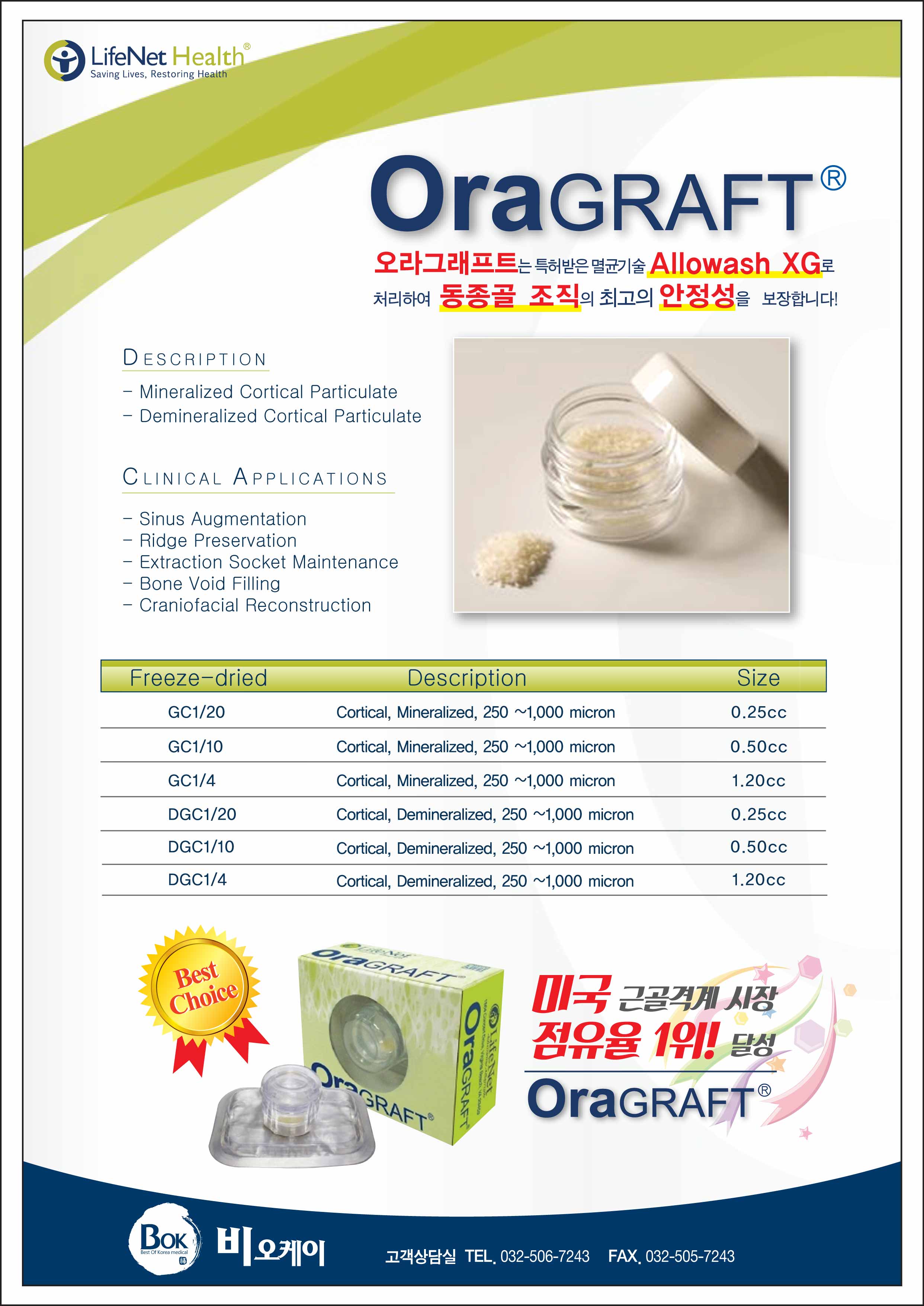 미국 FDA 등 공인된 조직은행의 멸균 및 바이러스 제거 과정을 거쳐 안전성 확보